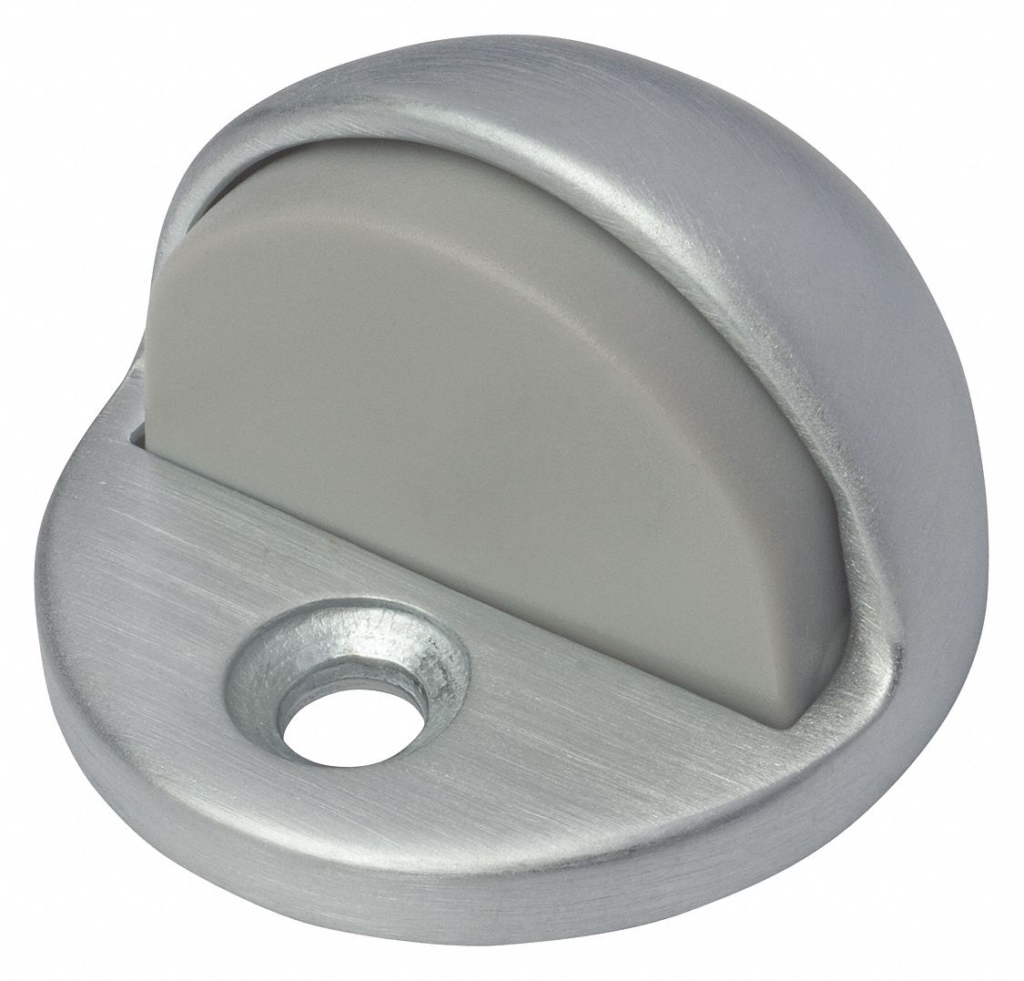 Dome door stop floor mount 1 3 4 x 2 base dia satin chrome finish 1 3 8 projection.