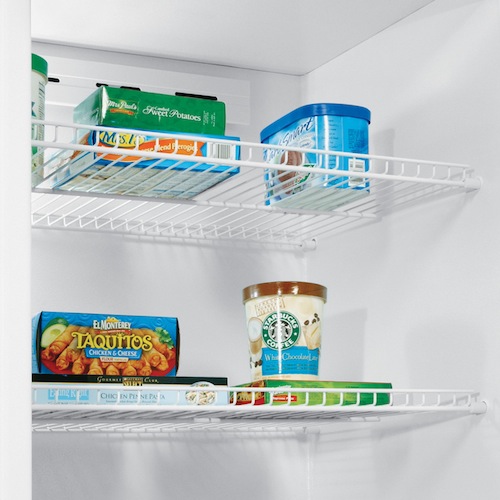 Slip frozen pizzas and treats onto the top shelf and load up the bottom shelves.