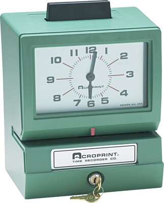 Acroprint bp125 6nr4 heavy duty manual battery operated time recorder for month date hour 1 12 and minutes time clock green 3 3 out of 5 stars 8 office product.